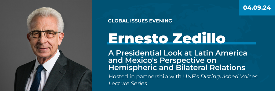 Ernesto Zedillo is the Frederick Iseman '74 Director of the Program for the Study of Globalization at the Yale Jackson School of Global Affairs and a Professor in the Field of International Economics and Politics; Professor of International and Area Studies; and Professor Adjunct at the Yale School of the Environment.